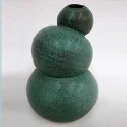 Quirky set of 3 petite hand thrown stoneware vases in a jade green satin glaze.